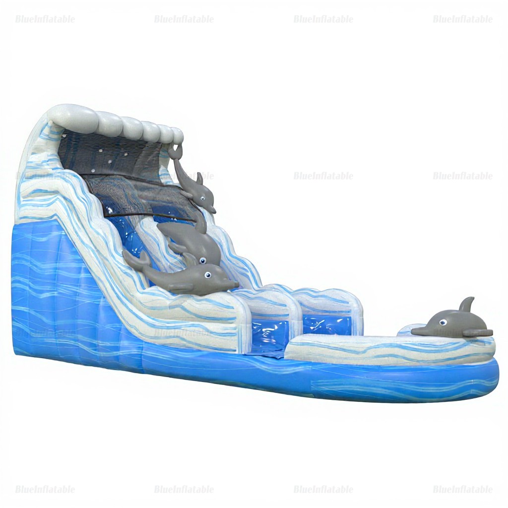 Bring ocean excitement to your next event! The Dolphin Inflatable Water Slide offers a vibrant aquatic theme, spacious pool area, and an exhilarating slide—perfect for outdoor parties, rentals, and summer gatherings. Built with durable commercial-grade PVC tarpaulin for hours of safe, active fun.