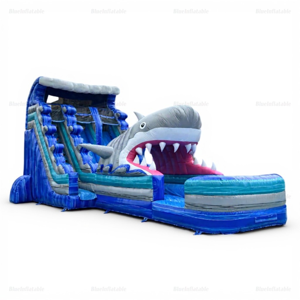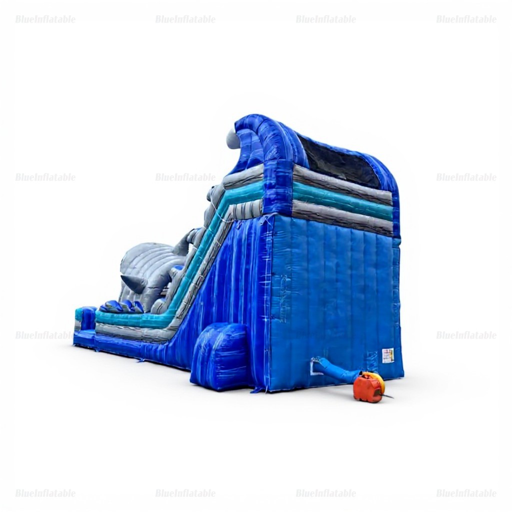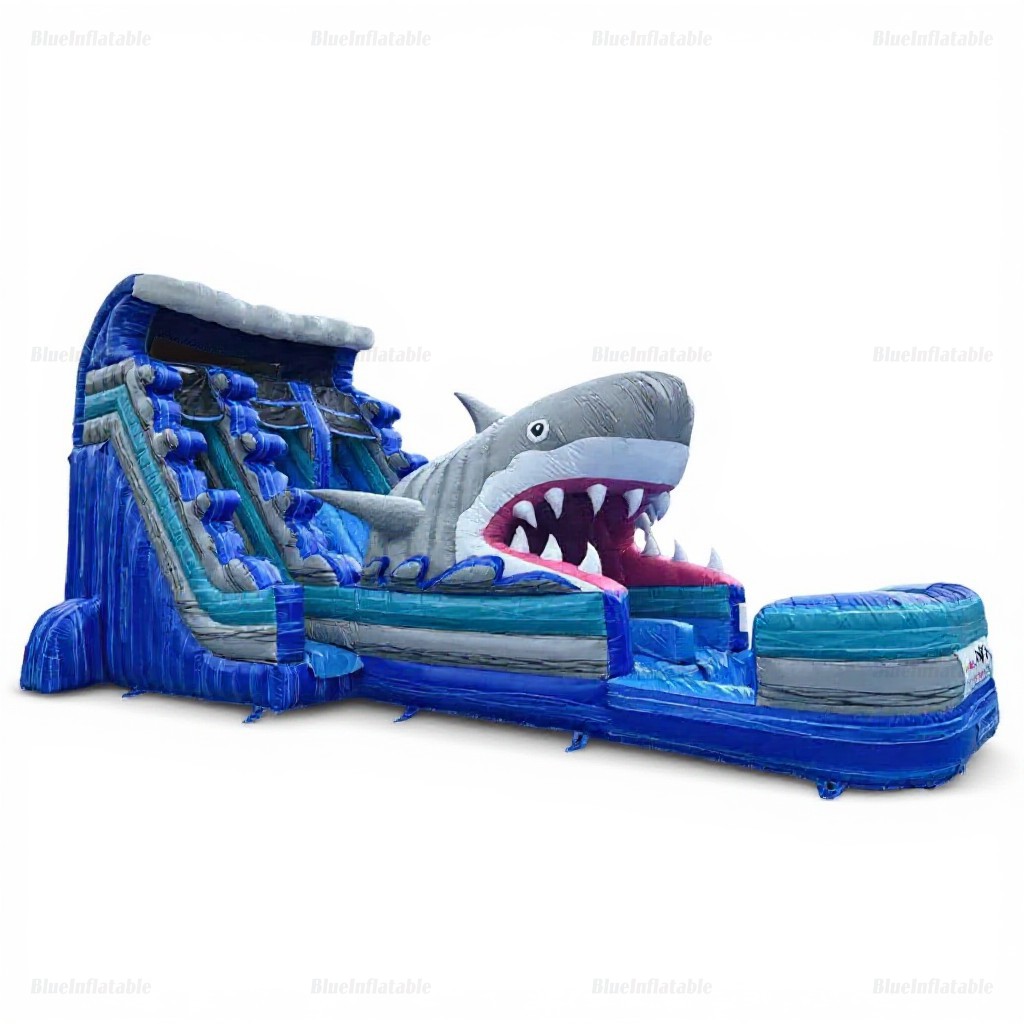 Product Name Giant Dual-Lane Shark Inflatable Water Slide with Pool