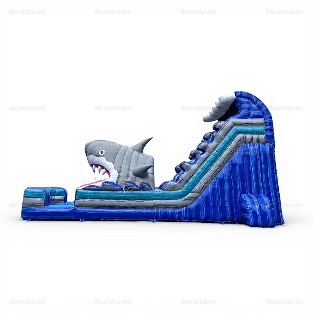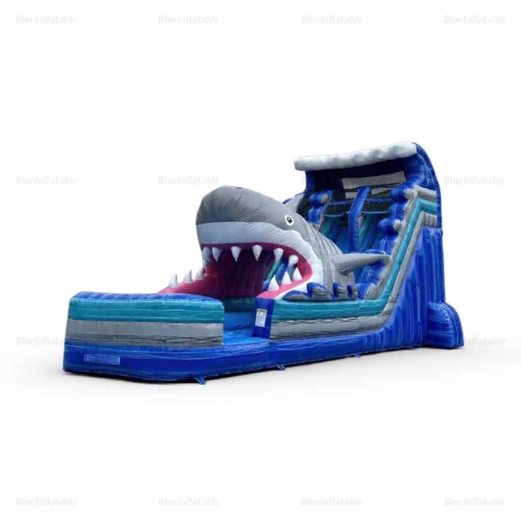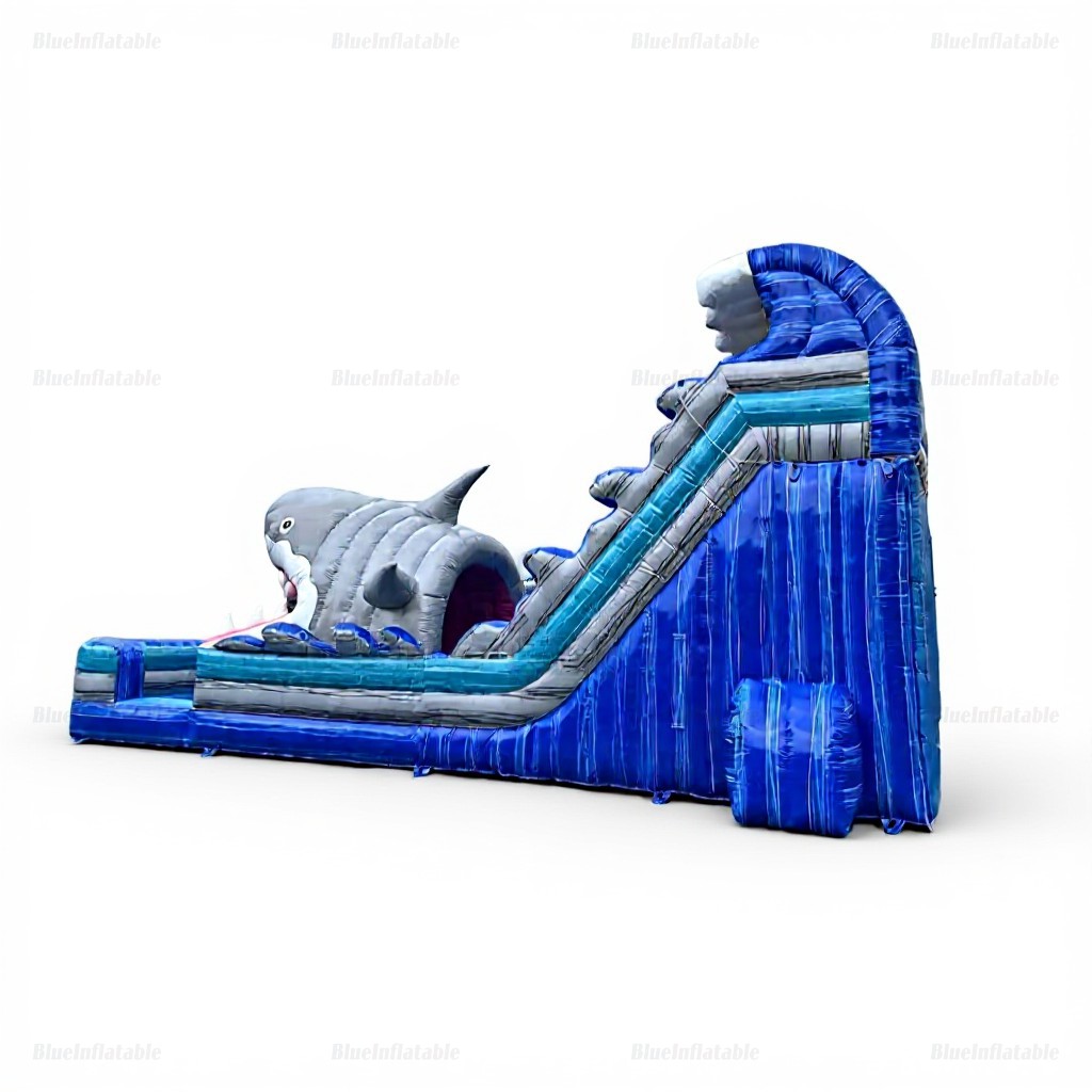 Product Name Giant Dual-Lane Shark Inflatable Water Slide with Pool
