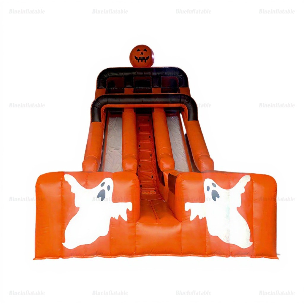 Bring excitement to your Halloween event with our Giant Halloween Double Inflatable Slide. Decorated with festive ghosts and pumpkins, this dry slide delivers endless fun—ideal for parties, festivals, and fall gatherings. Rent now to create unforgettable memories!