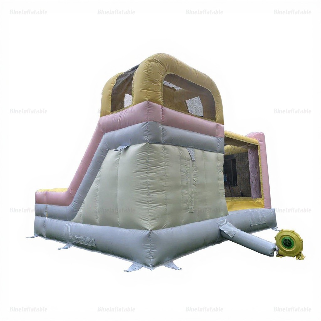 Make your special day unforgettable with this elegant inflatable wedding bounce castle, featuring a slide for added fun. Enjoy free worldwide shipping and a 2-year quality guarantee.