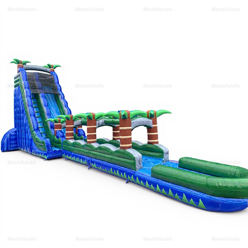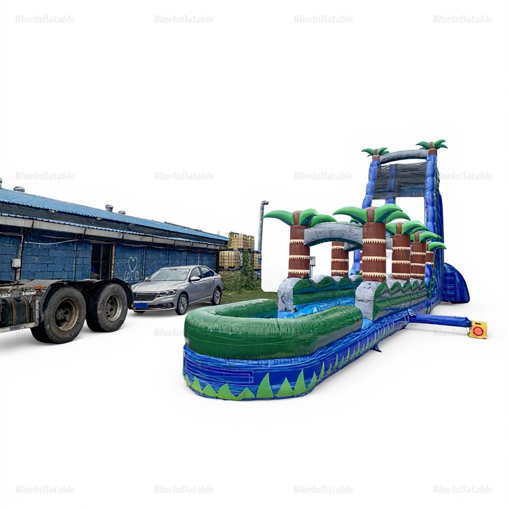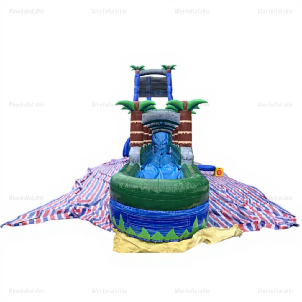 Tropical Inflatable Water Slide & Pool with Palm Trees