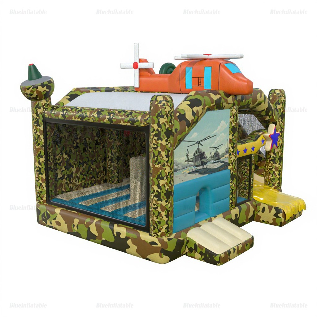 Military Helicopter Inflatable Bounce House & Slide