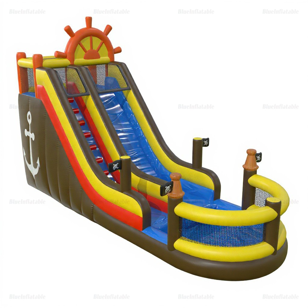 Embark on endless fun with this commercial-grade inflatable water slide and built-in pool—perfect for parties, rentals, and backyard excitement. Kids will love the pirate ship adventure!