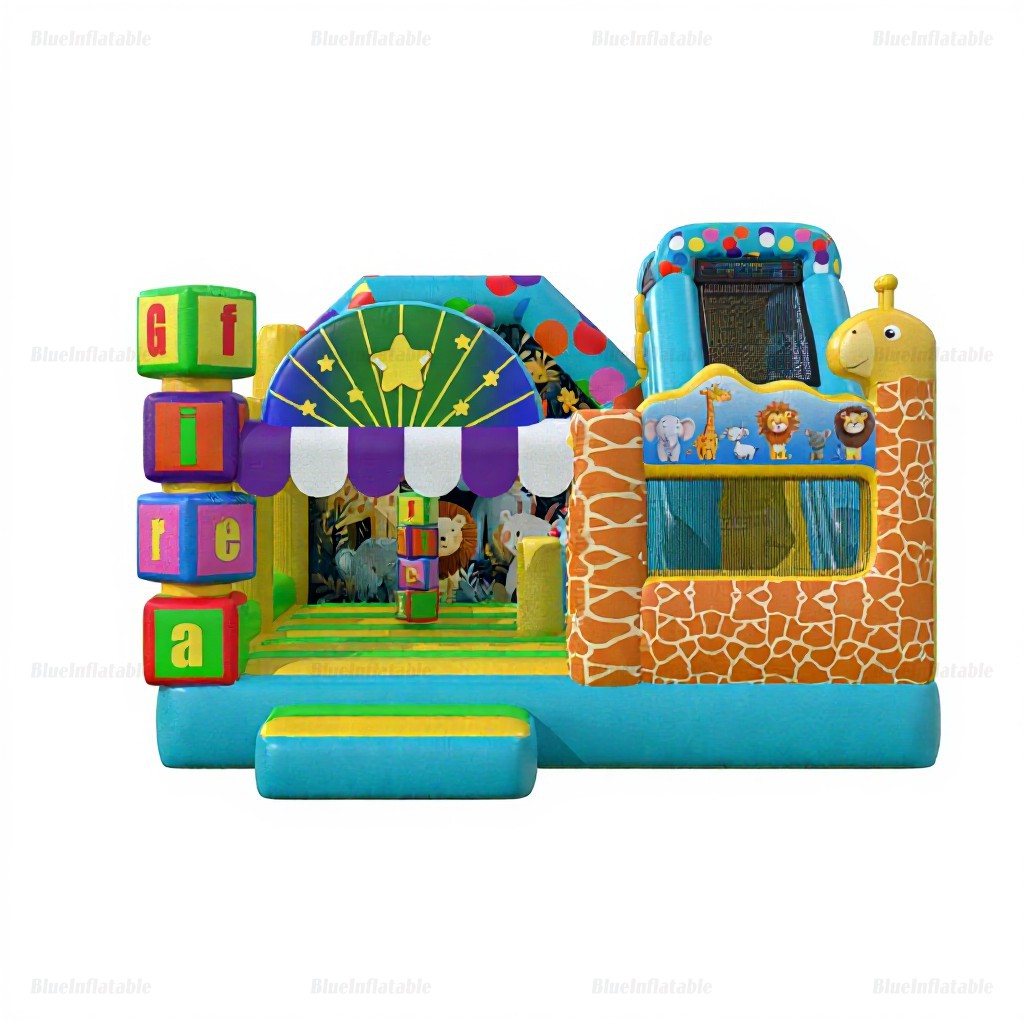 Safari Animal Inflatable Slide & Bounce House Combo