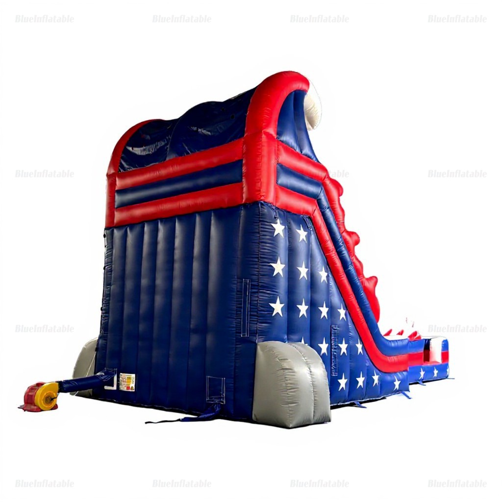 Make a splash at your next event with the Shark Inflatable Water Slide! Featuring a bold shark design with American flag accents, this vibrant slip n slide is perfect for pool parties, backyard gatherings, and holiday celebrations. Durable construction ensures safe, long-lasting fun for all ages. Available for rent near you—book today and dive into excitement!