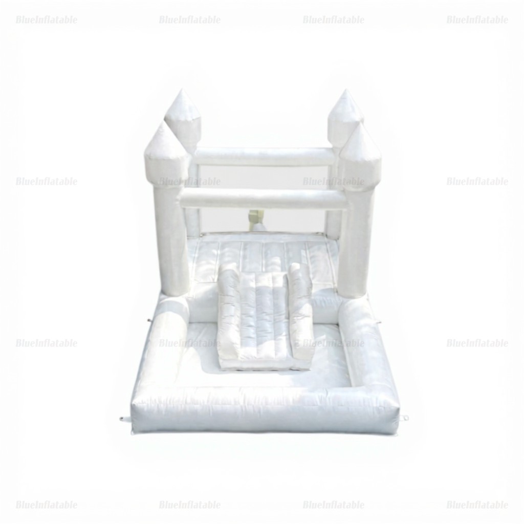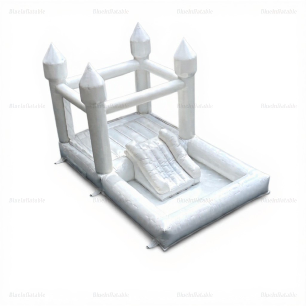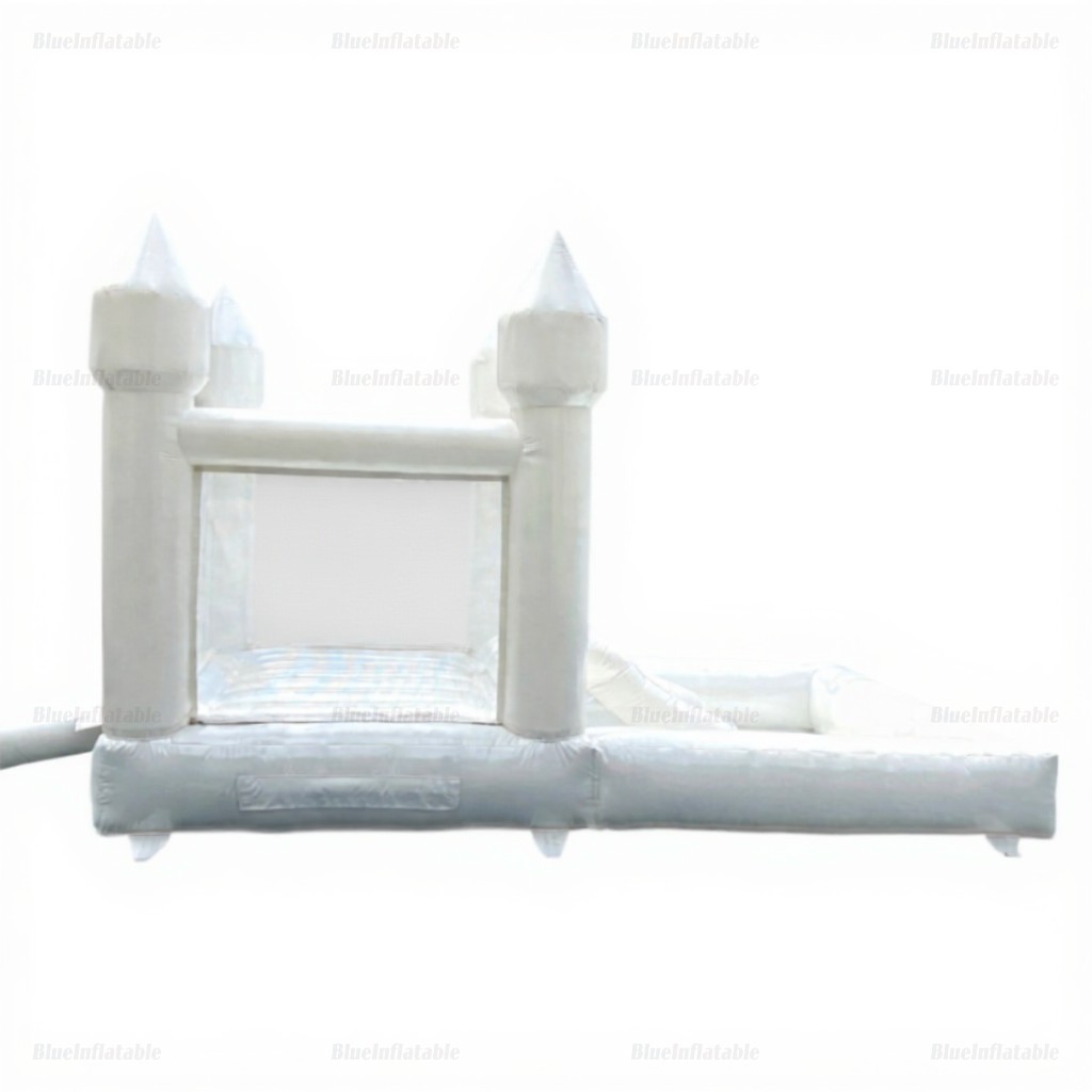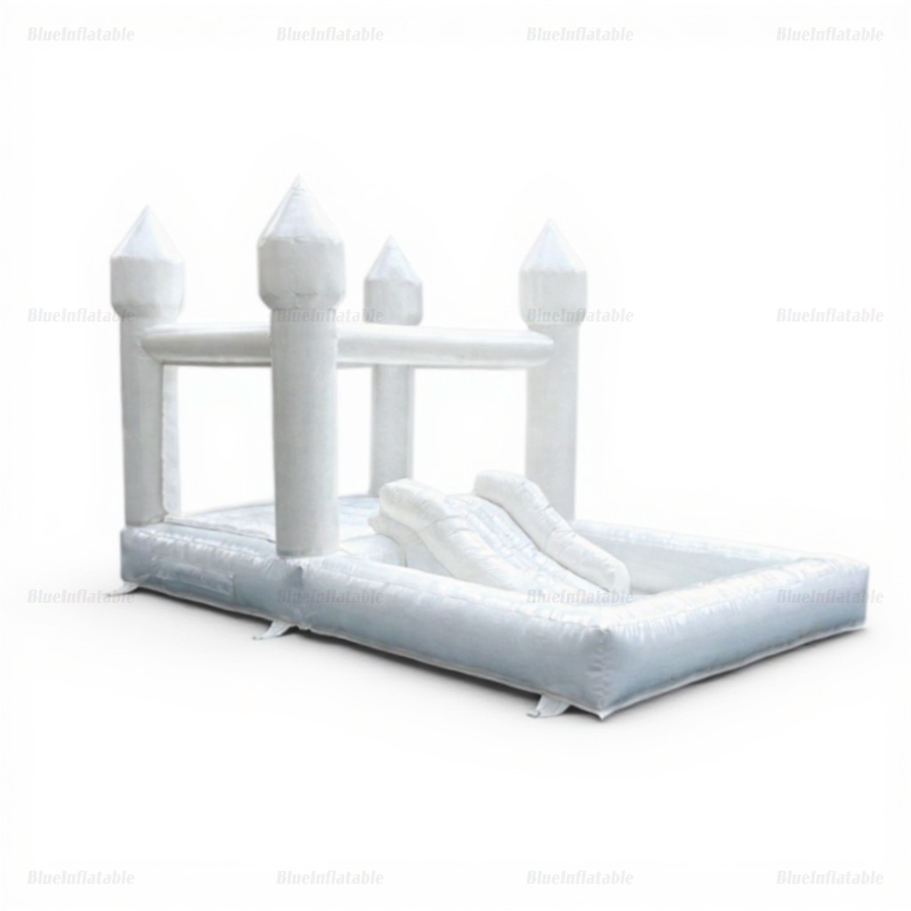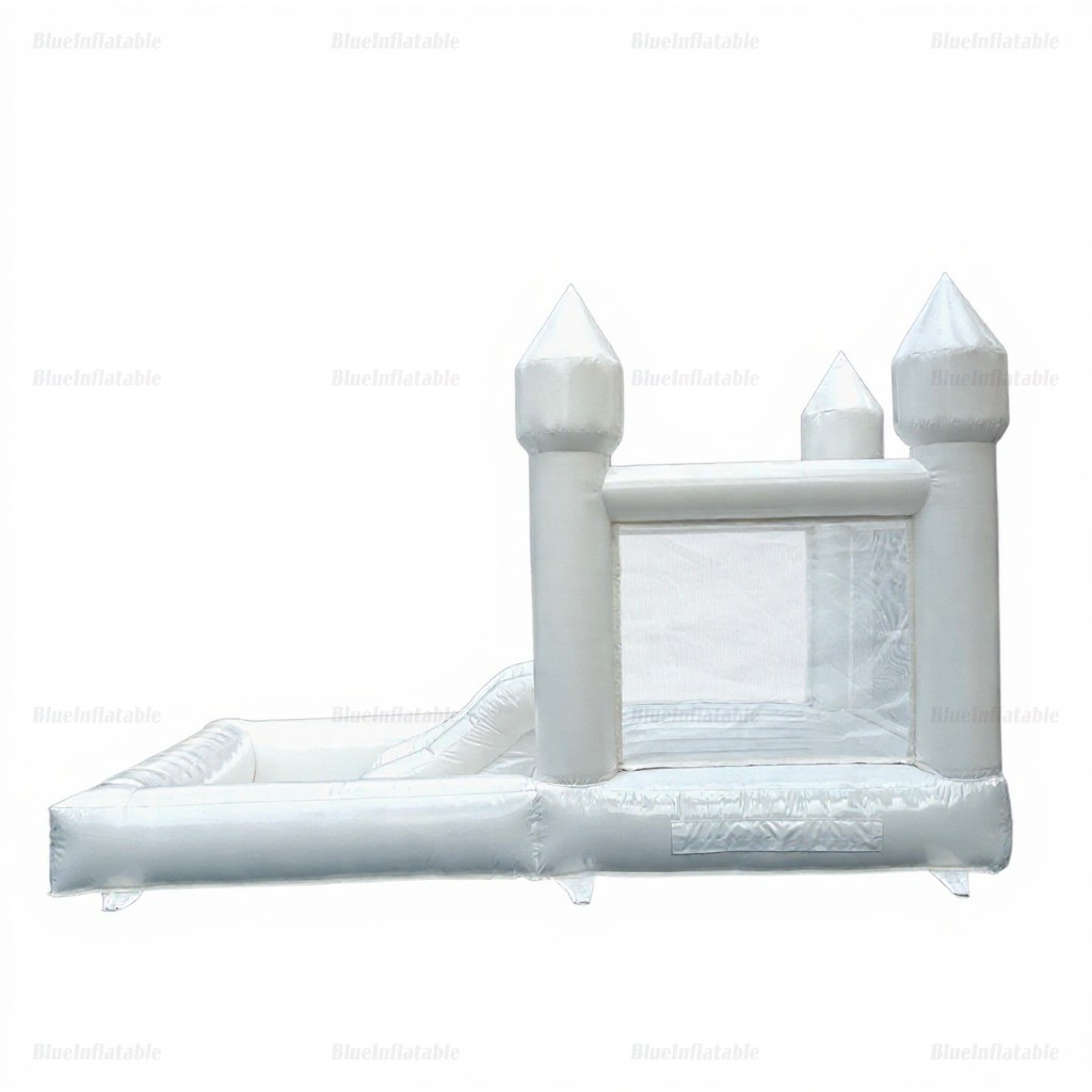 White Wedding Combo Bounce House with Slide & Ball Pit